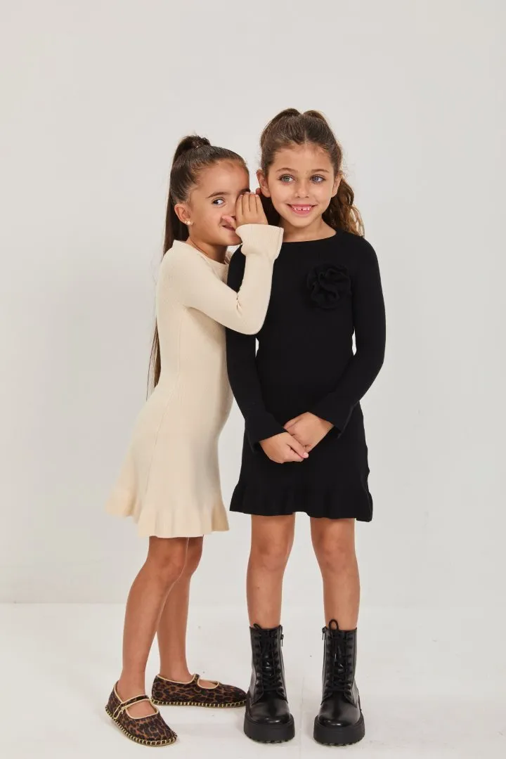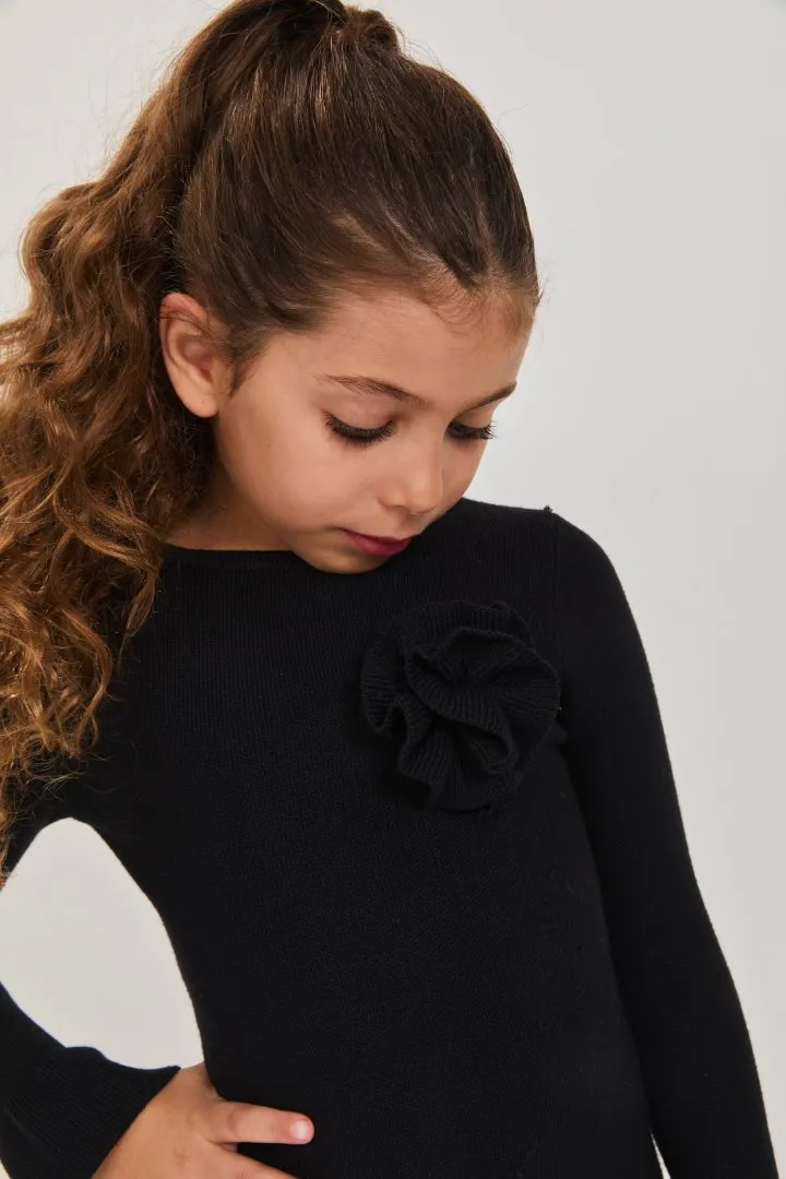 שמלת סריג עם פרח צבע שחור