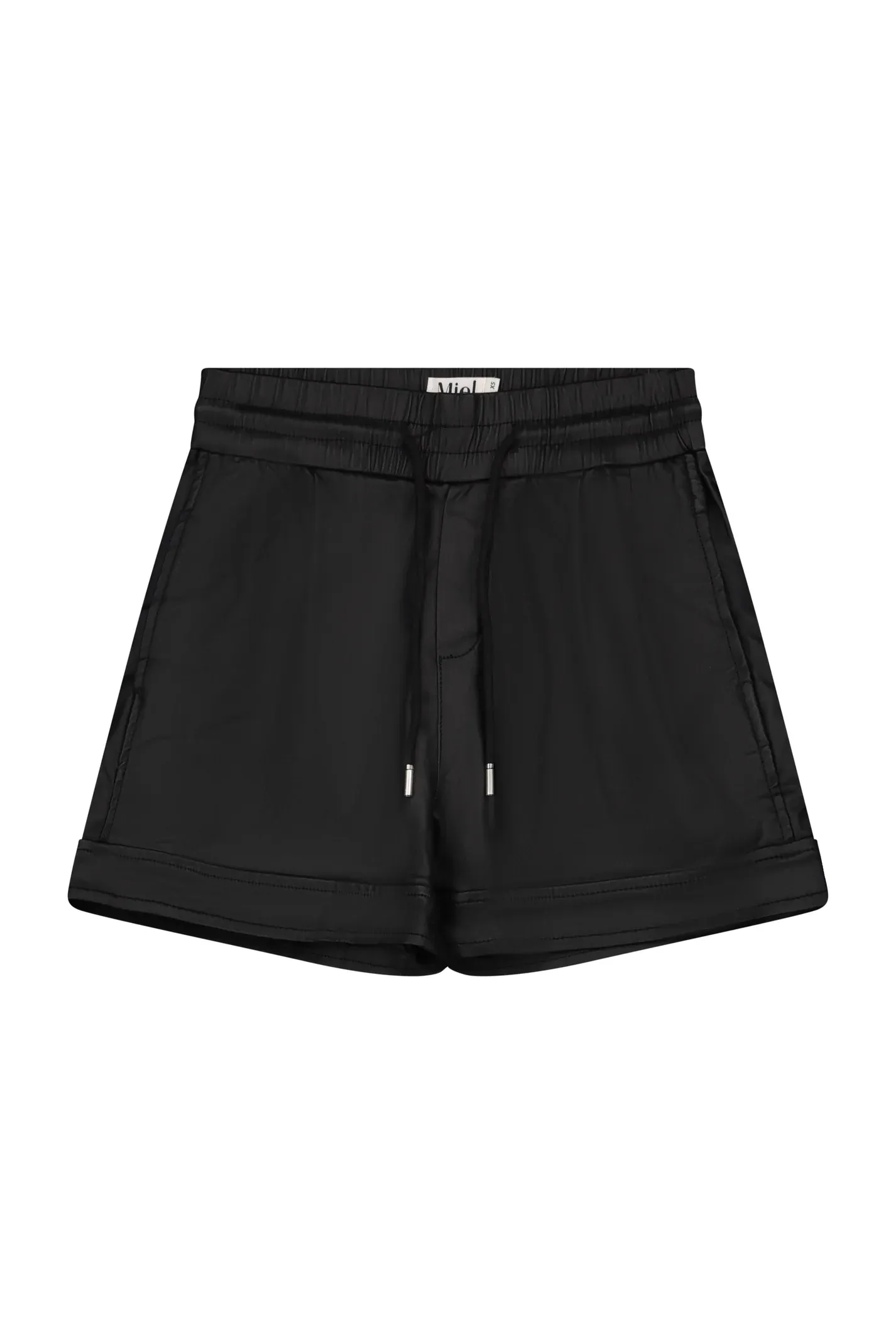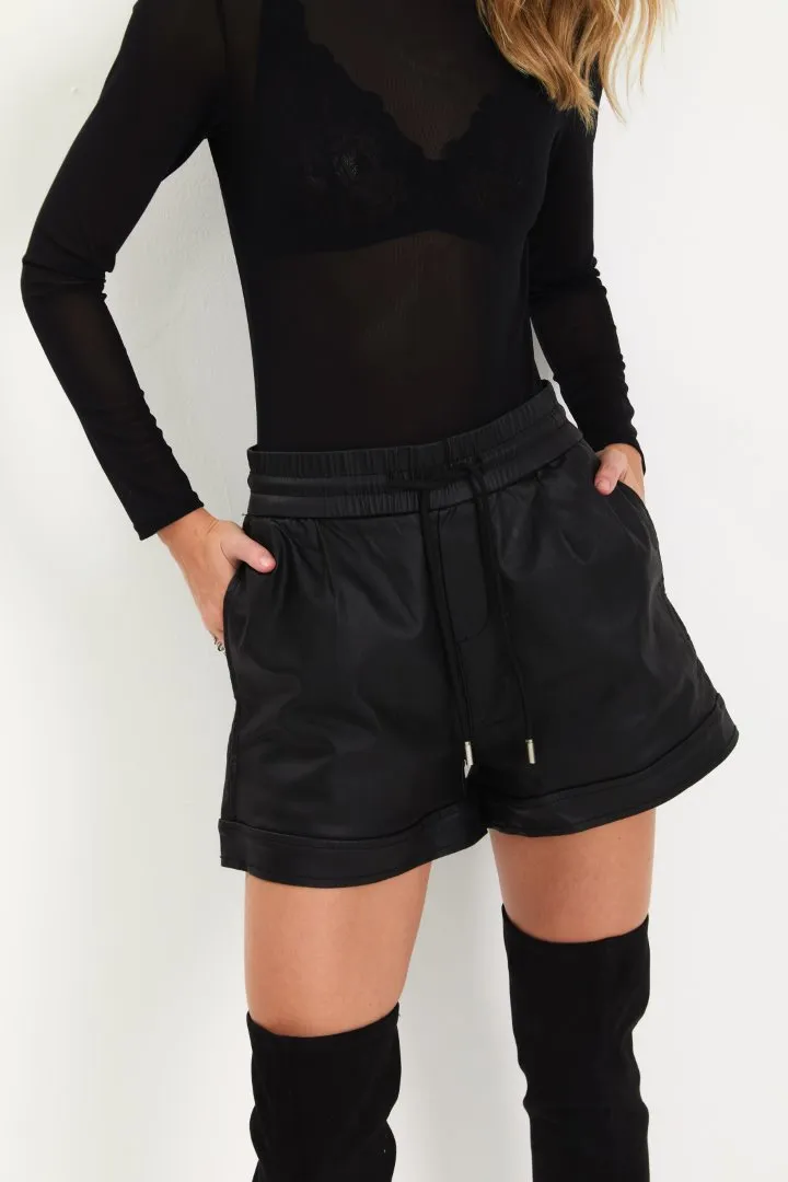 מכנס דמוי עור שחור קצר עם גומי ושרוך