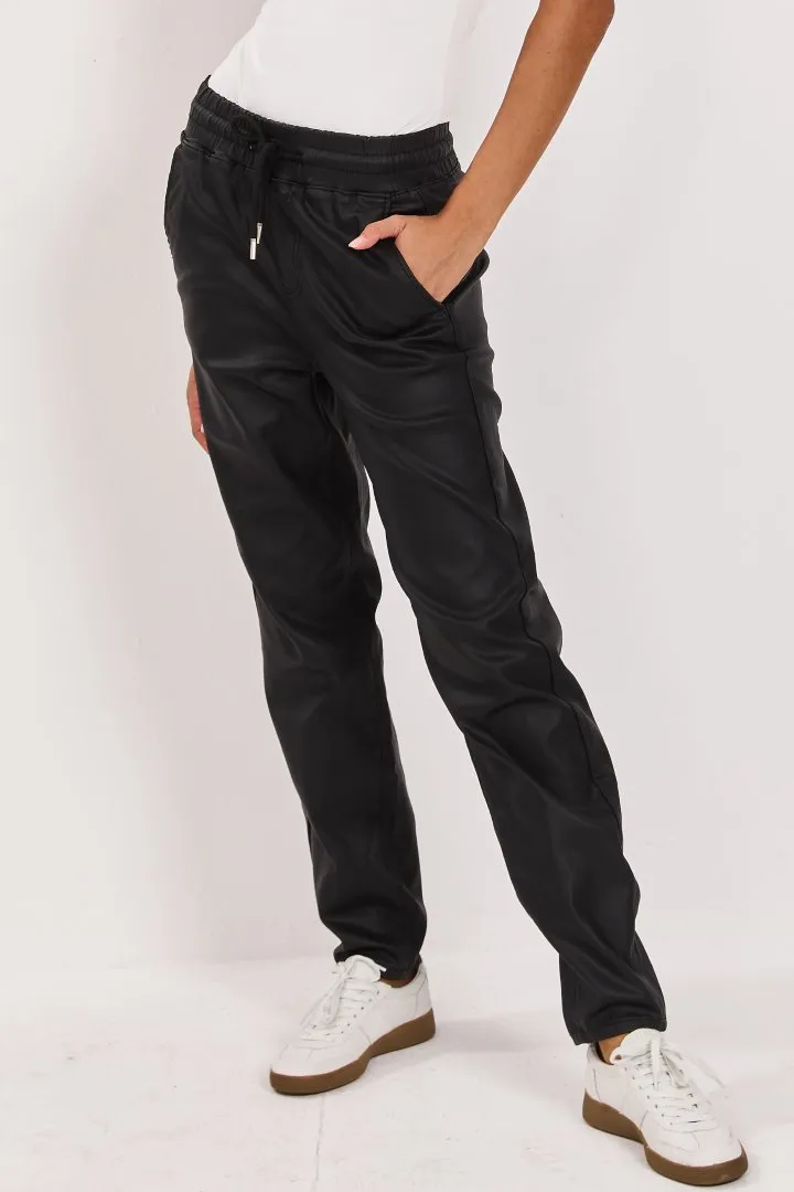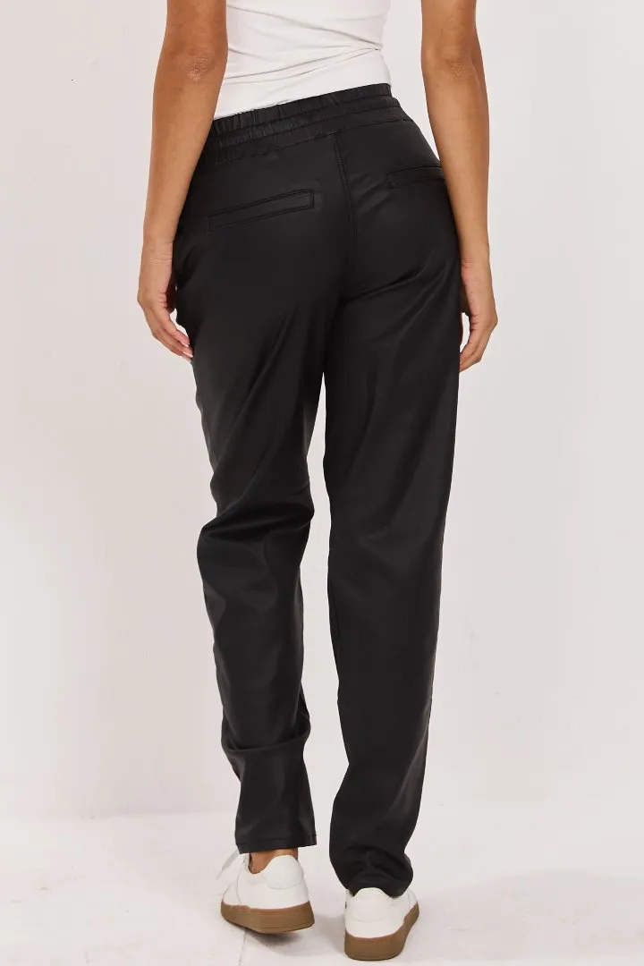 מכנס דמוי עור שחור ארוך עם גומי ושרוך