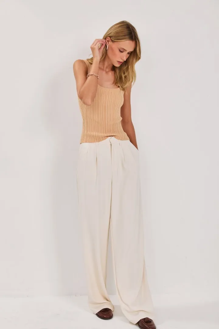 מכנס אלגנטי גזרה רחבה בצבע קרם
