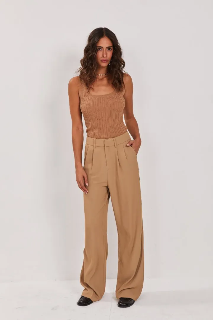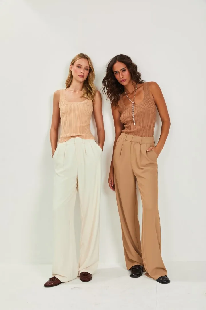 מכנס אלגנטי גזרה רחבה בצבע חום מוקה