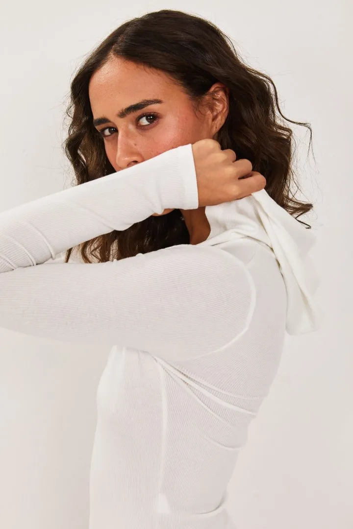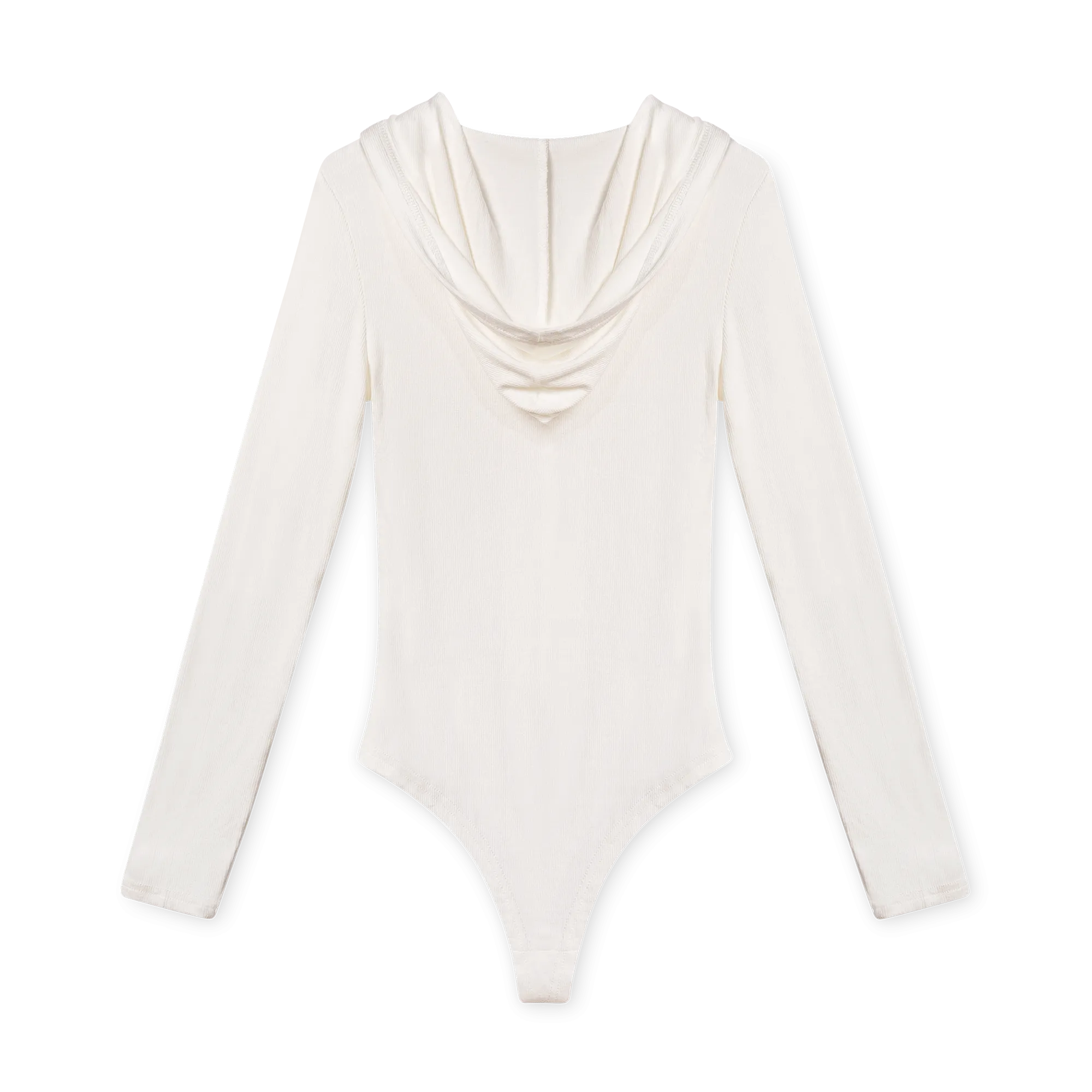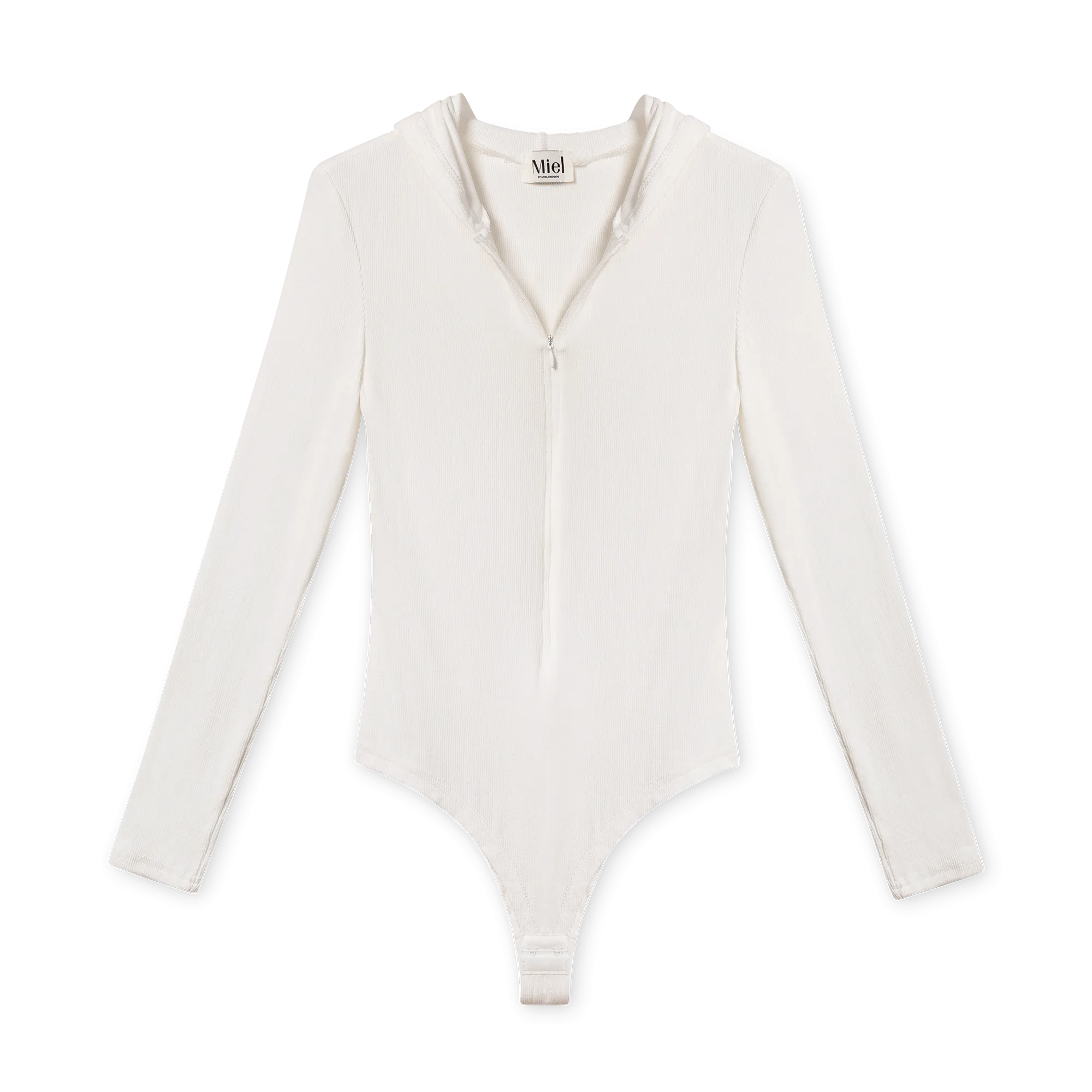 בגד גוף בד ריב עם קפוצ'ון ורוכסן צבע לבן