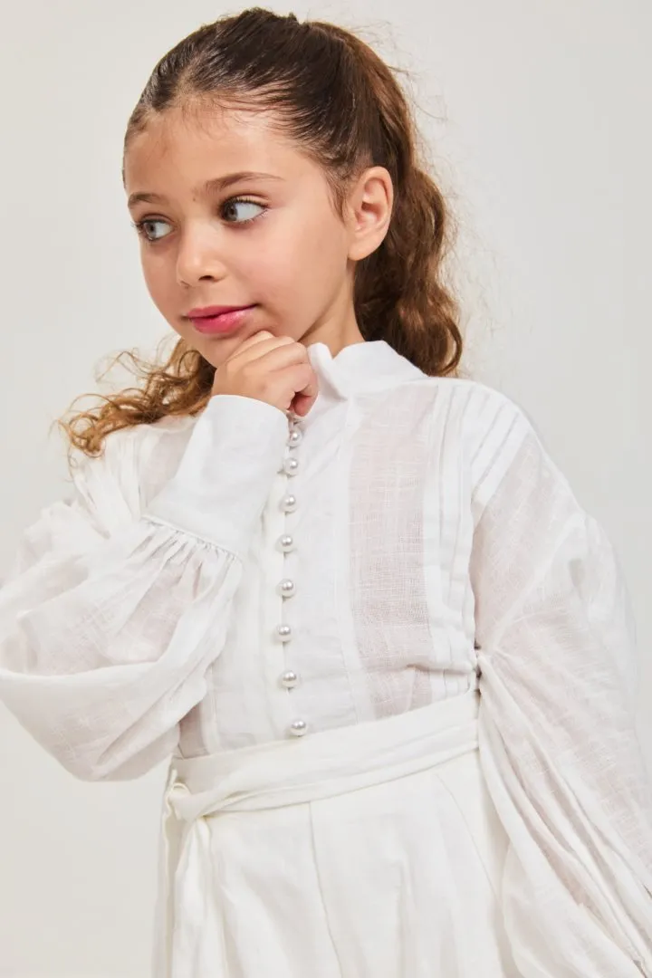 חליפת 2 חלקים מכנס וחולצה בצבע לבן
